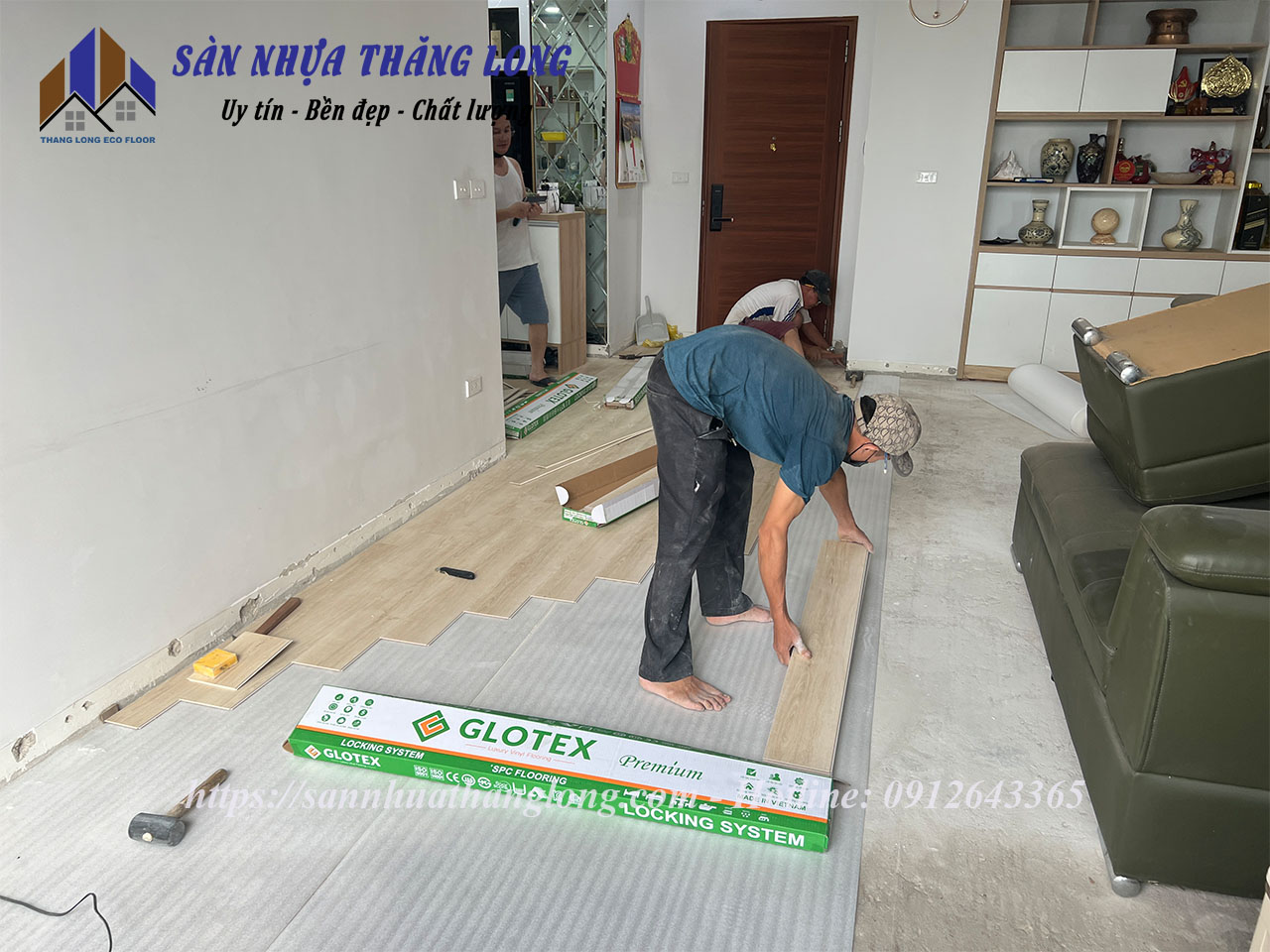 Hình ảnh thi công thực tế Sàn nhựa Glotex 6mm-Mã C601