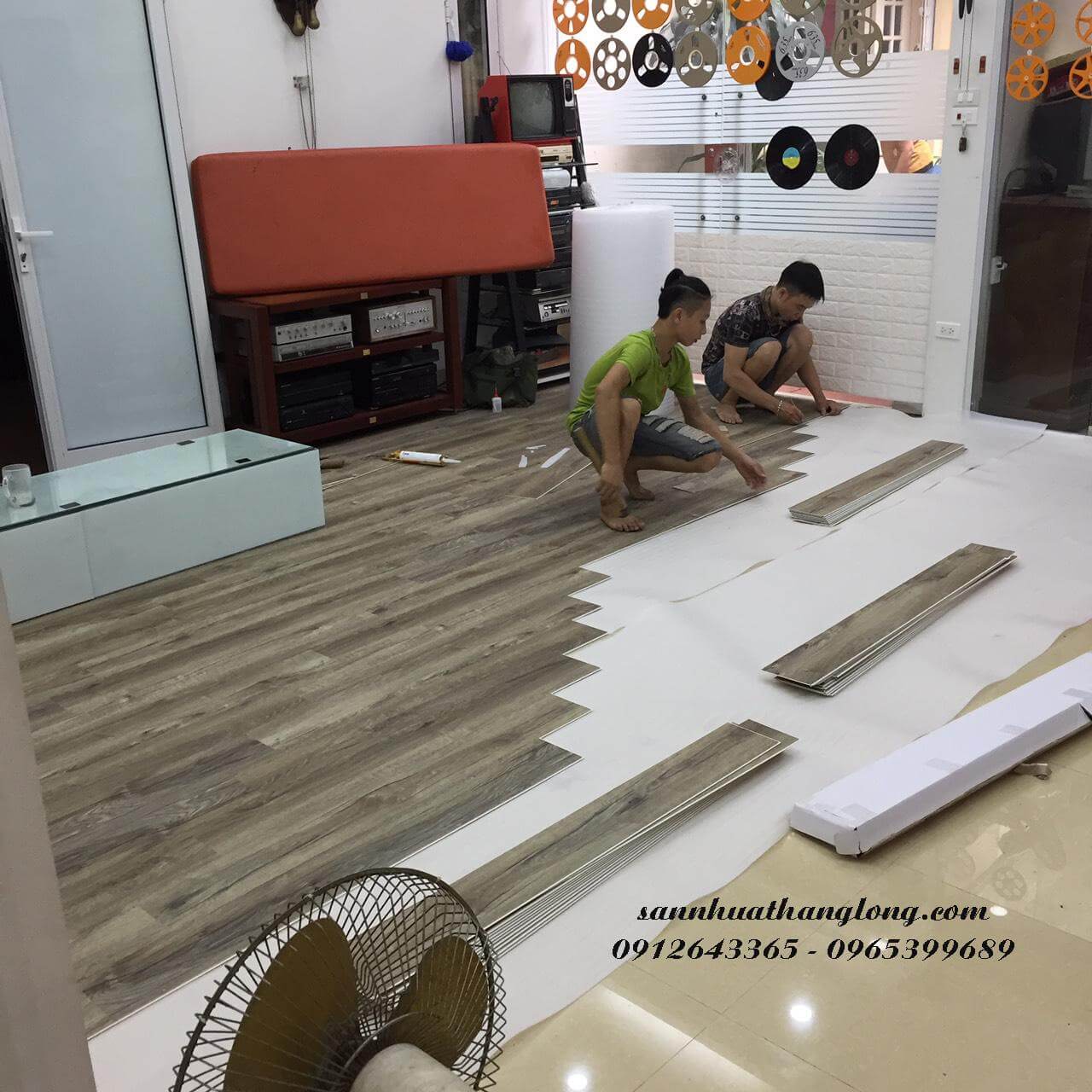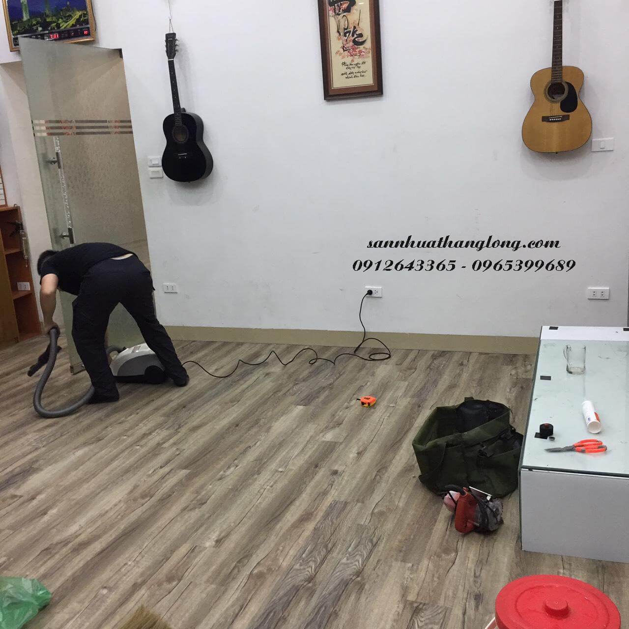 Thi công Sàn nhựa vân gỗ hèm khóa cao cấp tại nhà anh Lực - phố Đồng Nhân